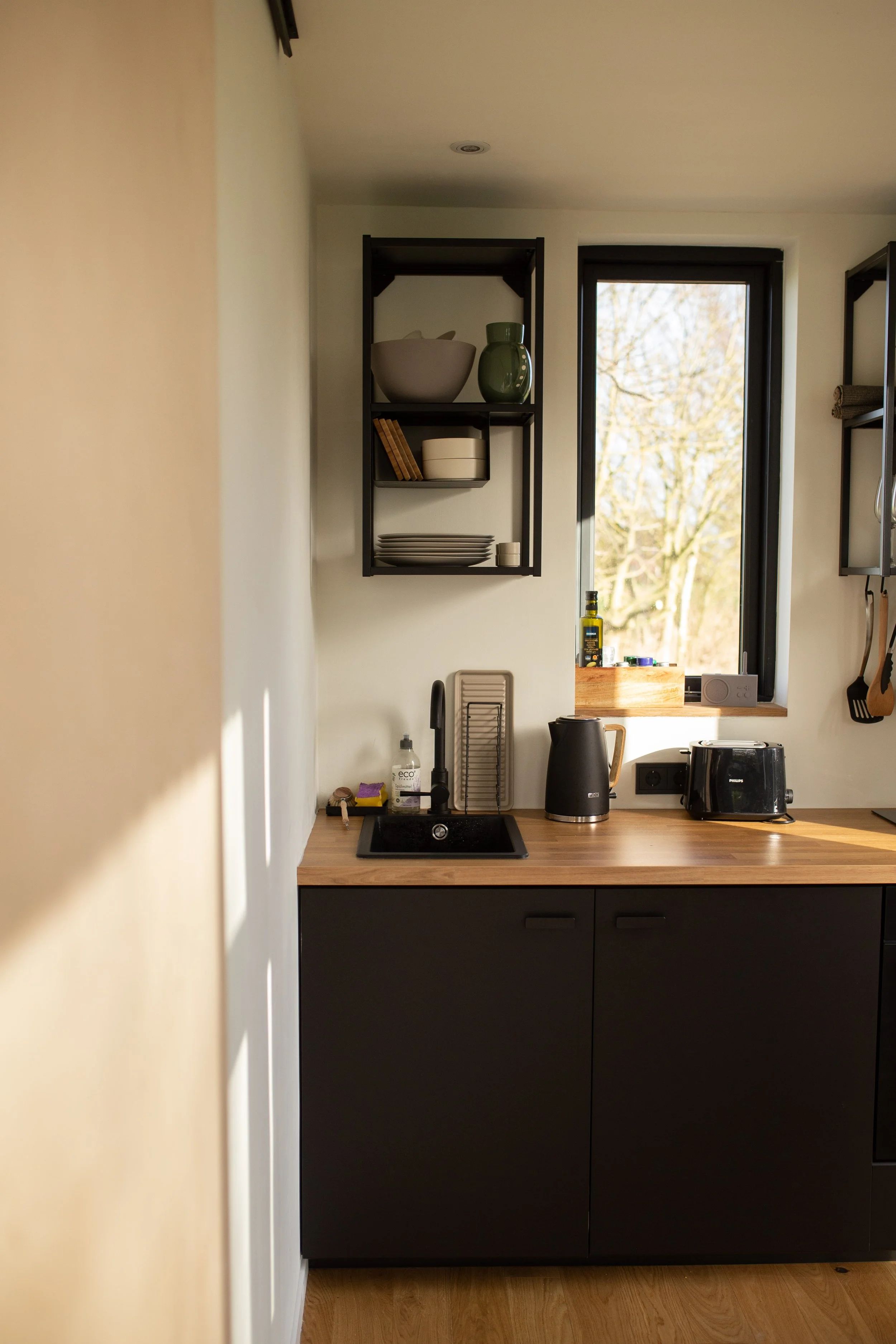 Spüle mit schwarzer Armatur