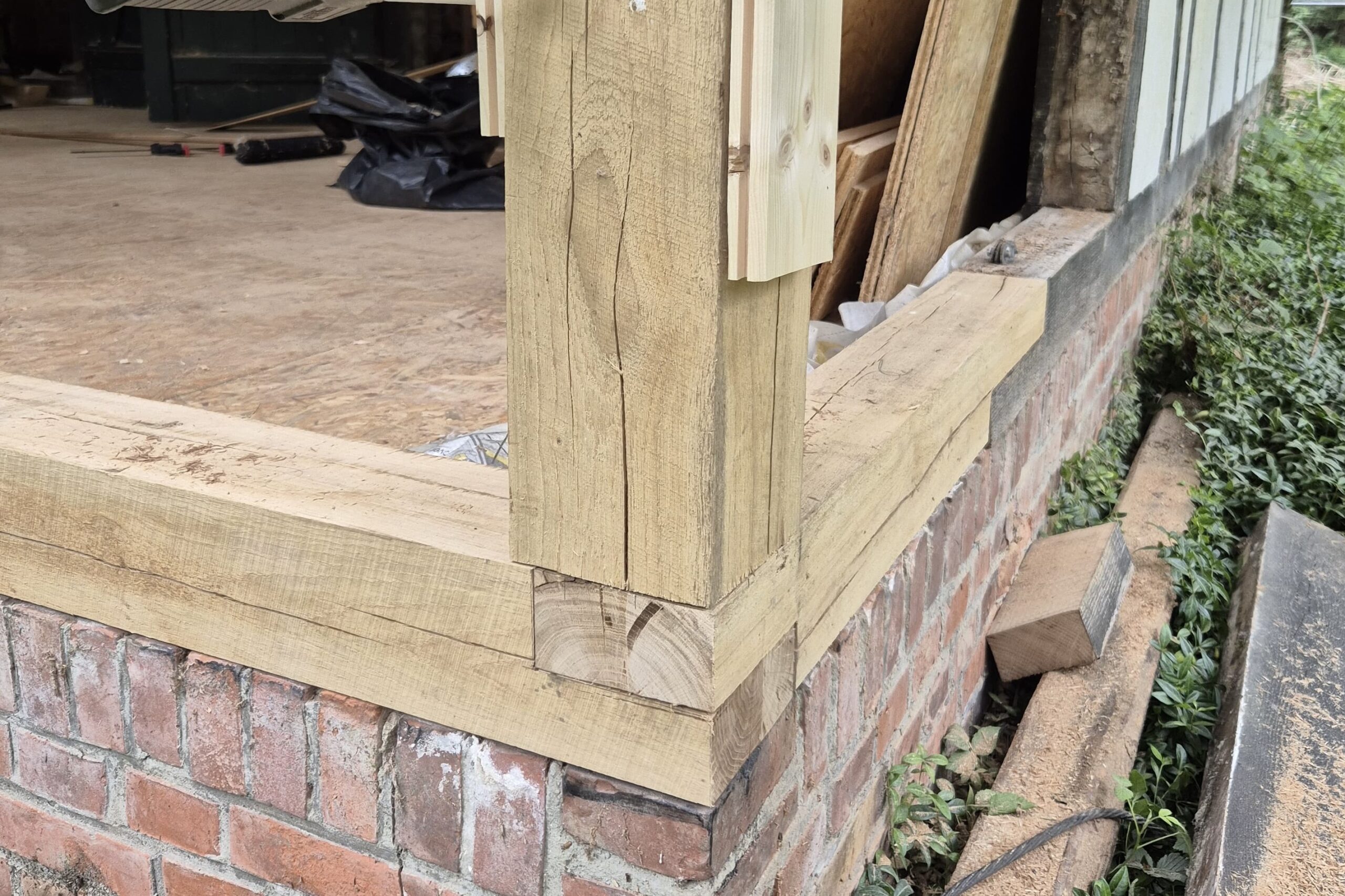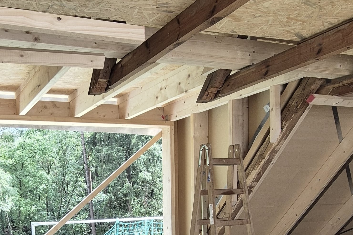 Das Fachwerk im Bereich der Terrasse war zum Teil schon leicht beschädigt, sodass diese Stellen im Zuge der Sanierung neu hergestellt wurden.